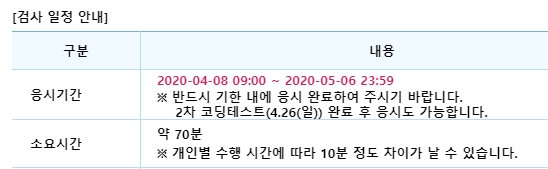 코로나가 가장 심해졌었던 시기라 계속해서 전형이 늦춰졌었고, 결국 코딩 테스트는 온라인으로 보게 되었습니다.