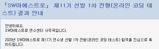 | SW마에스트로 11기 최종 합격 후기 2 (코딩테스트, 최종면접) (1) | 2021.05.22 |