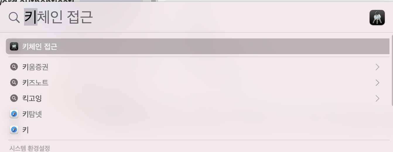 2. mac os 의 경우 키체인 접근으로 들어가서 깃헙을 검색한다.